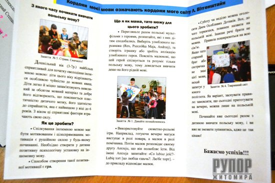З 5 по 28 листопада у Житомирському дошкільному навчальному закладі № 30 завдяки проекту «Europejska Polska. Dla najmłodszych» («Європейська Польща. Для наймолодших»), який реалізували за сприяння Fundacji Sempre a Frente в рамках кінцевого етапу проекту «Szkoła Polonijnych Liderów Lokalnych», маленькі житомиряни мали можливість вивчати польську мову граючись.