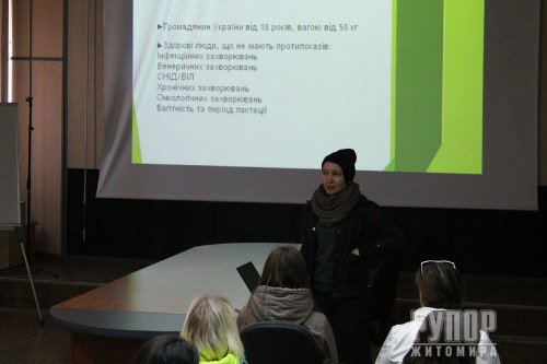 У рамках проведення «Тижня донорства» студентський ректорат Житомирського державного технологічного університету 29 березня ініціював у вузі зустріч, під час якої фахівці розповідали про підготовку до здачі крові.