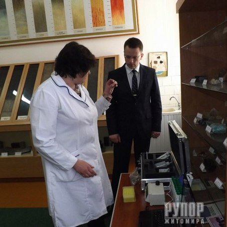 На кафедрі грунтознавства і землеробства Житомирського національного агроекологічного університету готуються презентувати студентам агрономічного факультету новий прилад – портативну лабораторію «Агровектор ПФ-014». За словами доцента кафедри Лариси Довбиш, лабораторія функціональної листової діагностики «Агровектор ПФ-014» вітчизняного виробництва, коштує 2 тисячі доларів. Придбали її допомогли благодійники, а використовувати будуть студенти агроуніверситету в навчальних цілях. Працювати можна в аудиторних умовах та безпосередньо на дослідних ділянках під час навчальної практики. «Фотометр «Агровектор ПФ-014» використовують для визначення рівня забезпечення рослини елементами мінерального живлення залежно від фази їх росту та розвитку. Експрес-аналіз зразків листкової маси за короткий час (до 1 години) надає інформацію щодо нестачі по 14 елементах живлення», – розповідає доцент кафедри грунтознавства і землеробства Лариса Довбиш та знайомить ректора Житомирського національного агроекологічного університету Олега Скидана із методикою проведення досліджень за допомогою «Агровектора». Усю необхідну інформацію після досліджень можна побачити на табло фотометра, а далі опрацьовувати оримані результати за допомогою програми на комп’ютері. Зручно, швидко та надійно: запевняють співробітники кафедри і відзначають, що наявність такої лабораторії особливо доречна у весняно-літній сезон.