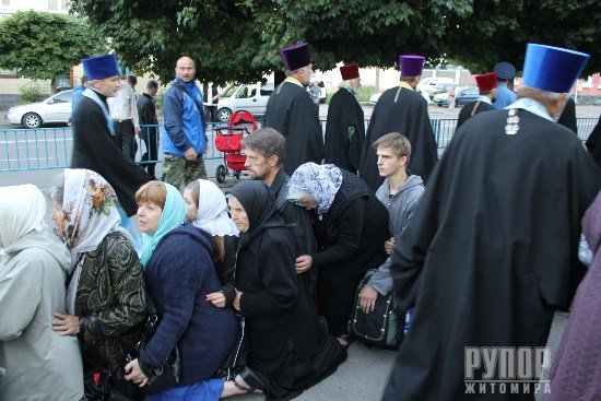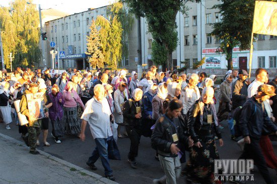 На углу улиц Восточной и Киевской стояла небольшая группка житомирских активистов, которые явно не разделяют стремления верующих к миру и спокойствию в Украине. Возможно у них другое мировоззрение, но хотелось бы вспомнить слова одного мудреца, что нет мудрости в том, чтобы признавать истинность одной веры в государстве. В столь трудные времена для Украины необходимо проявлять любовь и терпимость к ближнему своему, как написано в Библии.