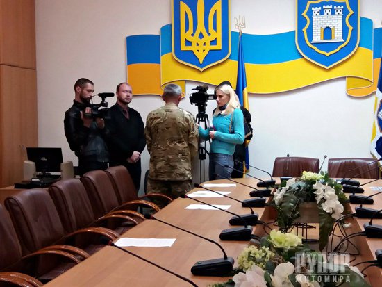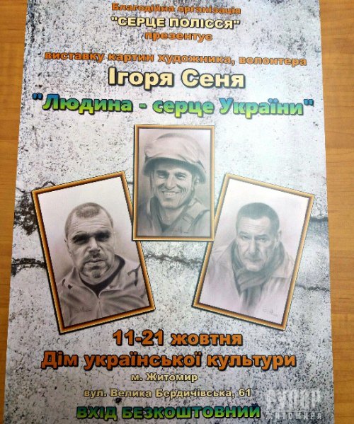 Сьогодні, 5 жовтня, у Житомирській міські раді відбулася прес-конференція щодо виставки портретів учасників АТО "Людина – Серце України" художника Ігоря Сеня, яка буде тривати з 11 по 21 жовтня 2016 року у Домі української культури.