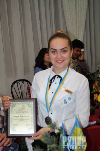 - друге місце (срібна медаль) – Жолудь Анастасія, учениця ДНЗ «Житомирське вище професійне технологічне училище» – у компетенції «Ресторанний сервіс»;
