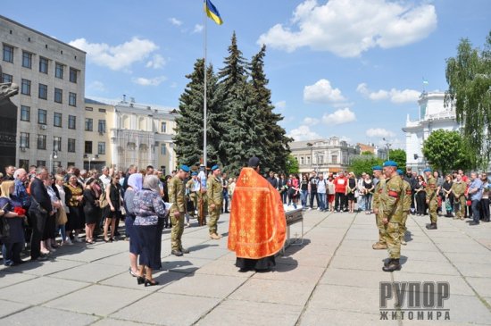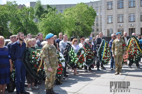 Рідні, близькі, військовослужбовці, представники влади та громадськість попрощалися із військовослужбовцем Валентином Ковальським. Прощання проходило сьогодні, 7 травня, на майдані ім. С.П. Корольова. Валентин Ковальський боровся за життя з липня 2014 року. Довідково. 25-річний військовий був снайпером 95-ї аеромобільної бригади. Воював у зоні АТО з весни 2014 року. 27 липня того ж року колона, у якій був і Валентин, потрапила у засідку неподалік Савур-могили на Донеччині. Куля 7,62 мм пробила бронежилет хлопця, пройшла під кишечником, вдарилася об передню частину бронежилета і відлетіла назад.