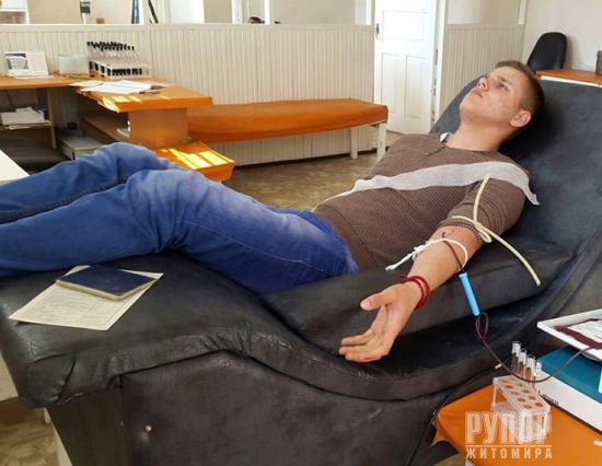 | Студенти факультету ветеринарної медицини ЖНАЕУ стали донорами крові 18.05 09:39     Студенти Житомирського національного агроекологічного університету активно долучаються до різноманітних волонтерських ініціатив та благодійних акцій на підтримку онкохворих, учасників АТО, збирають та передають подарунки у дитячі будинки, опікуються дитячим відділенням психлікарні, тощо. Крім цього, гарною традицією в університеті є підтримка донорства. Кілька разів на рік студенти групами чи на факультетах організовують  походи в обласний центр крові. Зокрема, 11 травня донорами стали 10 студентів   факультету ветеринарної медицини ЖНАЕУ.  Кажуть, що процедура проста і досить швидка, але саме таким чином можна врятувати життя тих, хто цього потребує – поділитися своєю кров’ю. «Наші студенти відслідковують усю інформацію про необхідність донорів. При потребі відвідують центр крові чи влаштовують такі організовані походи. Вони знають як підготуватися до донорства і розуміють, що на сьогоднішній день – це реальний шанс допомогти іншим. Якщо ви здорові, але ще не є донором, не зволікайте. Хай донорство надасть відчуття гордості і радості за врятовані життя», - каже декан факультету ветеринарної медицини ЖНАЕУ Анатолій Ревунець.RuporZT